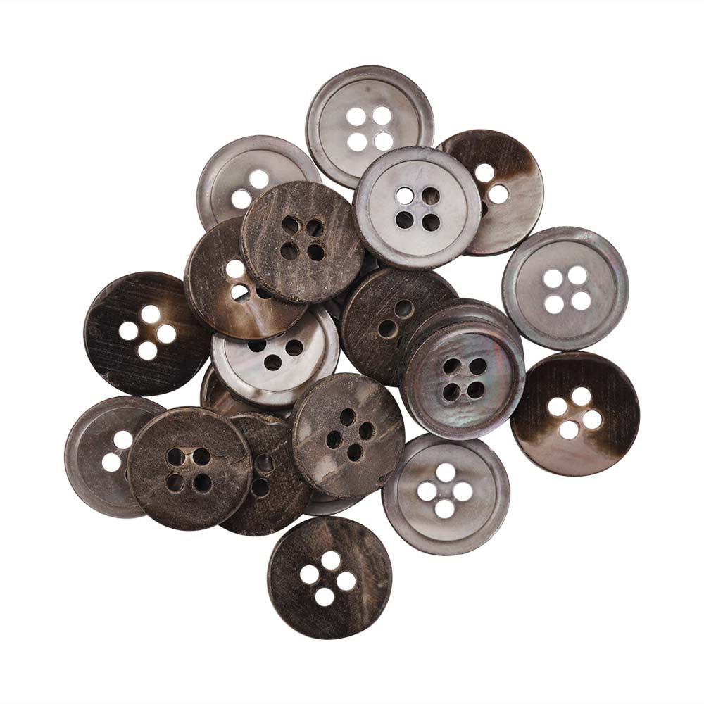 - Unique & beautiful these fancy shirt/kurta buttons are used in multipurpose ways. It features natural light grey round shape structure with a glossy, smooth & polished look with a round thin rim border. It is iridescent light grey on one side & darkish brown shade on the other side with an iridescent quality. These designer classics are mainly used for decoration on the shirts/kurtas to portray classical designs & modern aesthetics. It has a pearlescent look with smooth surface finish best suitable for cotton clothes & baby clothes.