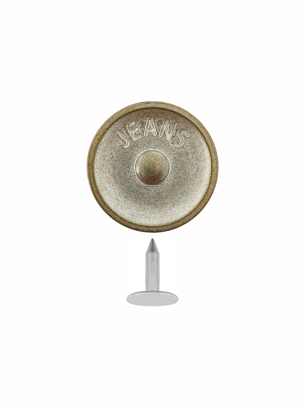 - These Silver with Brass Jeans Button a durable and stylish fastening solution designed to enhance the strength and aesthetic of denim wear. This button perfectly combines functionality with a touch of vintage charm, making it an essential choice for jeans manufacturers, tailors, and DIY enthusiasts.