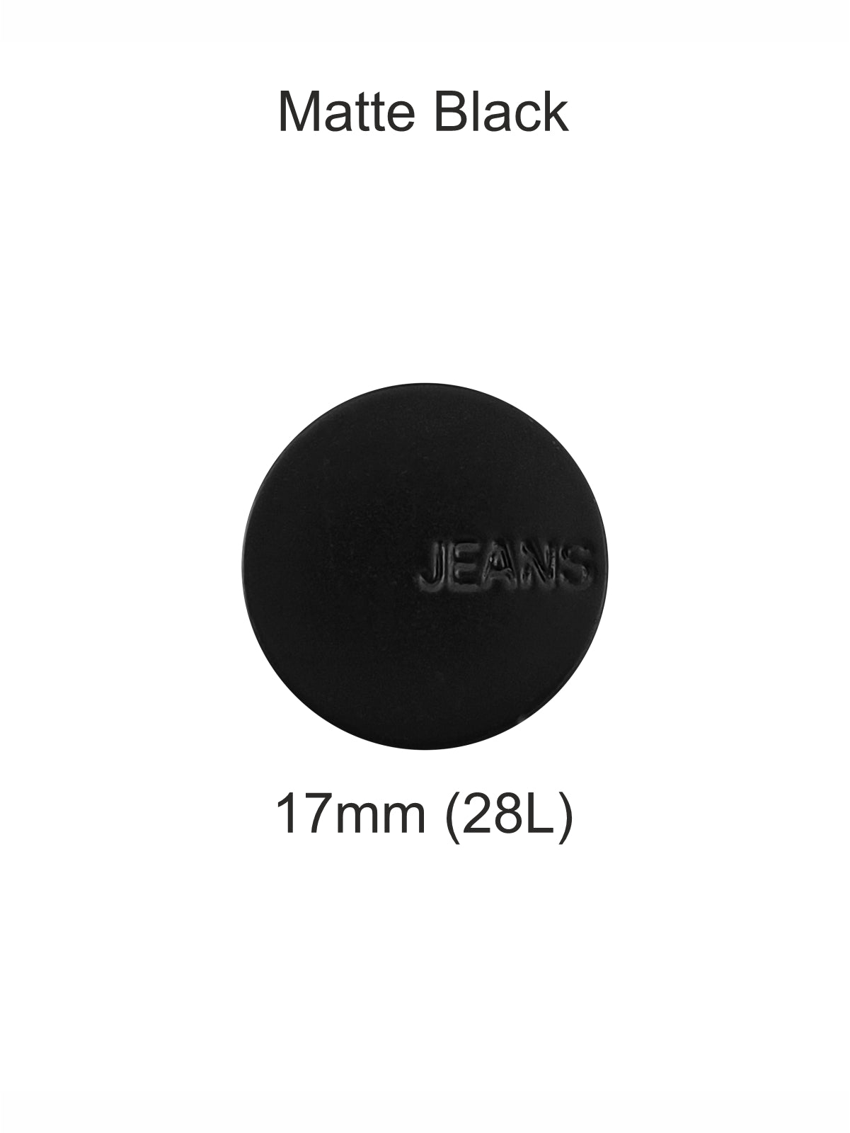 • These 17mm metal jeans buttons are designed to combine durability and style. crafted from good- quality alloy metal. Buttons are built to last while maintaining their classic appeal. Each button features an embossed “JEANS” design with matte black finish, adding a classic touch to any outfit, making them an ideal choice for denim jeans, jackets, skirts, and other clothing items.
