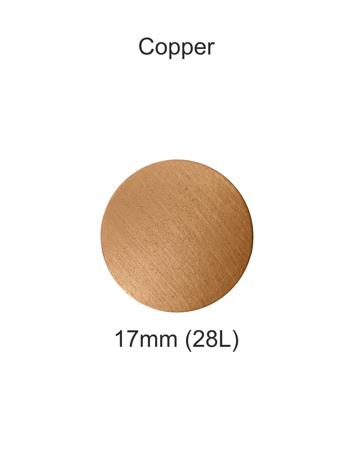 - This copper denim jeans button is designed for strong hold and long-lasting use on all types of denim clothing. Available in the standard 17mm (28L) size, Crafted from good-quality alloy metal, it is suitable for jeans, jackets, skirts, shorts and other heavy denim garments.