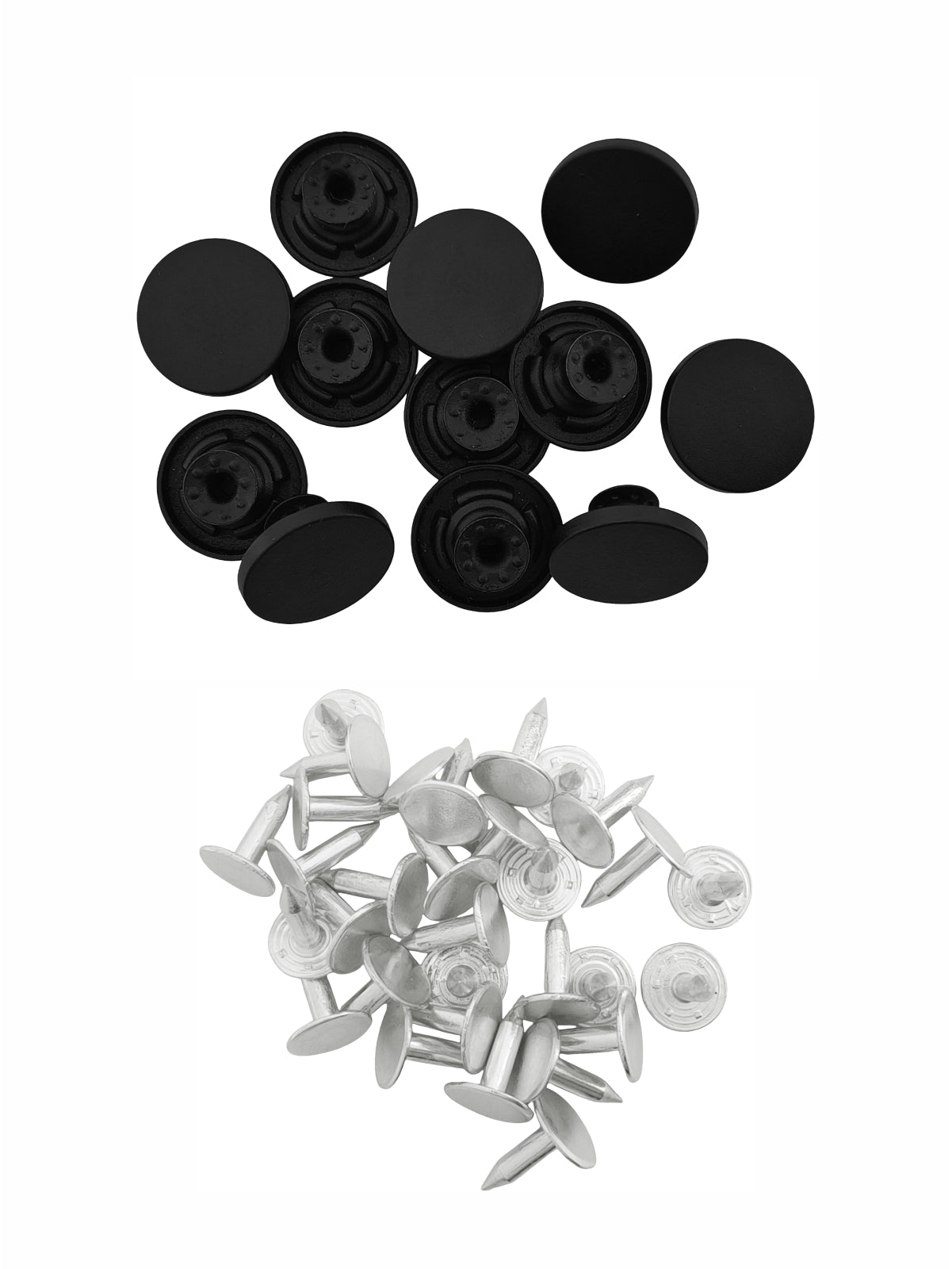- Each button set includes the button top and tack pin (nail), ensuring a secure and long-lasting hold when attached to denim or thick fabrics. The sturdy rivet-style construction prevents loosening over time, providing a professional and polished finish to any apparel project.