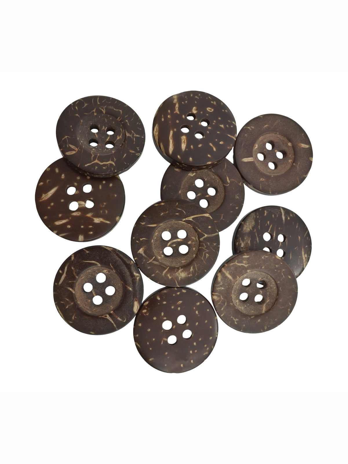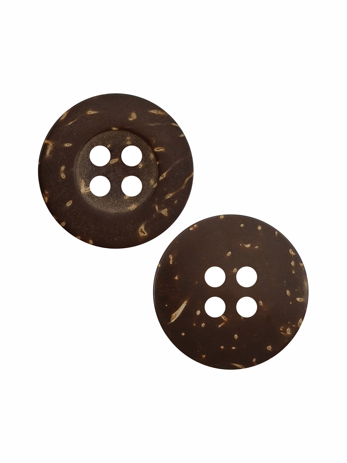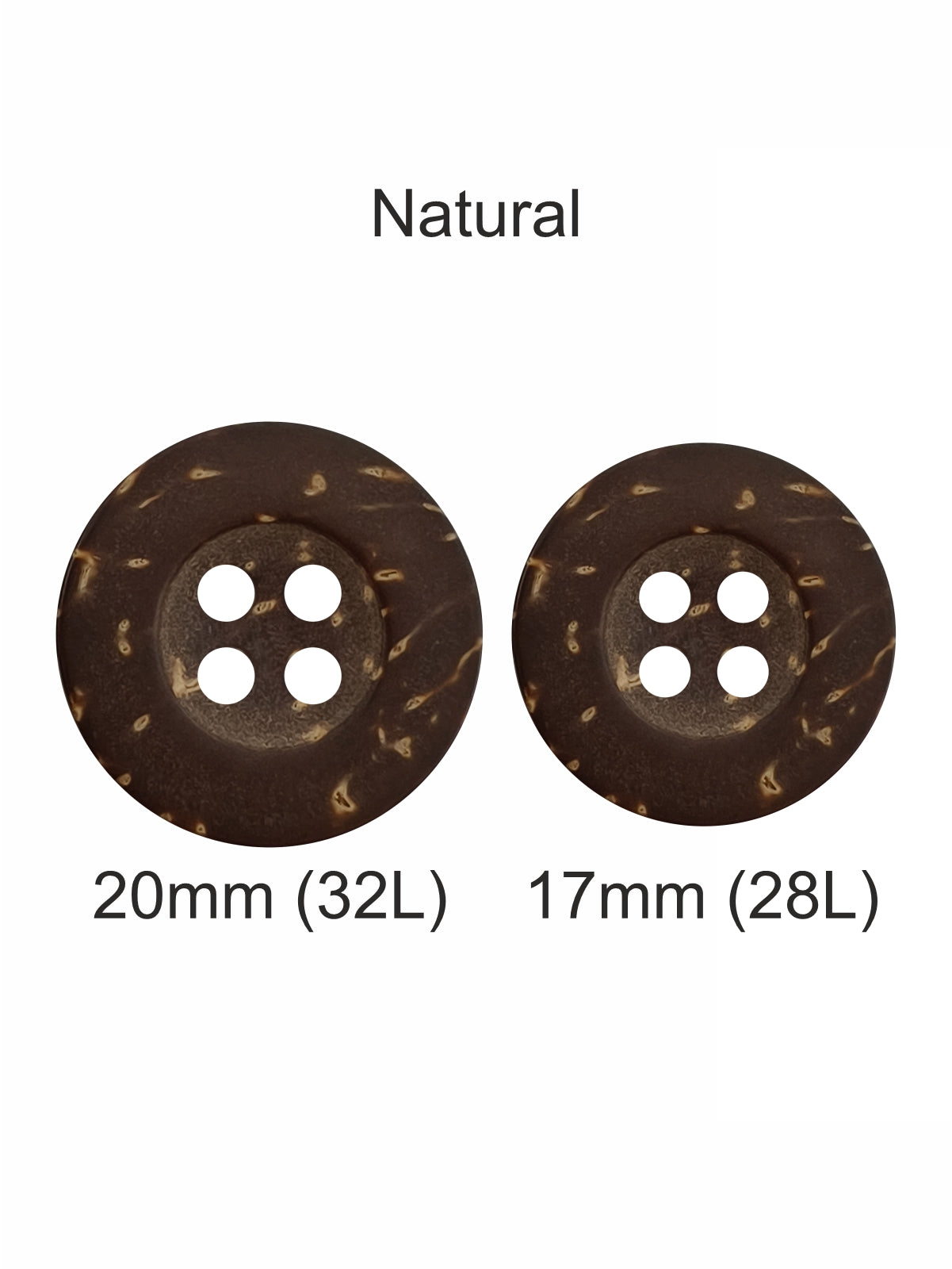 - These natural smooth coco 4-hole wooden buttons are a beautiful and durable choice for anyone who appreciates simple yet elegant details. Crafted from good-quality coconut shell, each button carries its own unique texture and smooth natural brown tone, giving a warm, earthy finish to any fabric or craft project. Available in two different sizes- 20mm (32L) and 17mm (28L).
