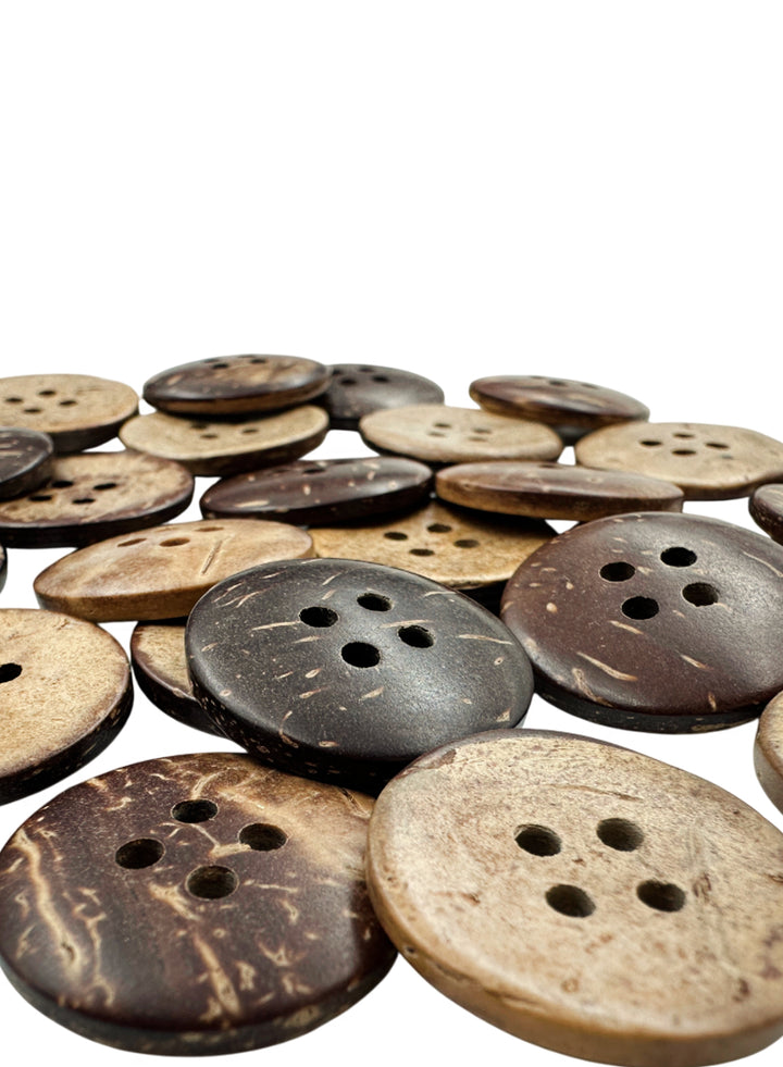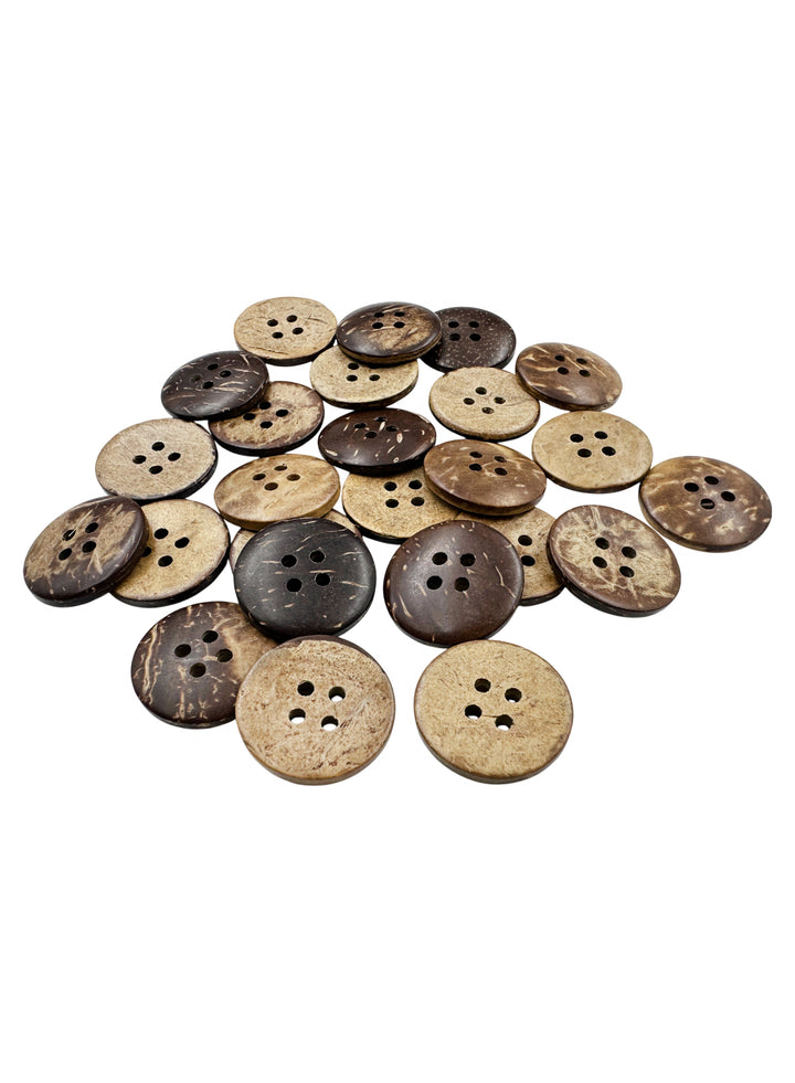 - Natural round shape 4-hole in smooth finish coco wooden brown color button is an excellent embellishment for your craft project & adorned on fashion accessories. Gives a woody touch to your garments. A wooden button which you can use from both sides whichever you find suitable.