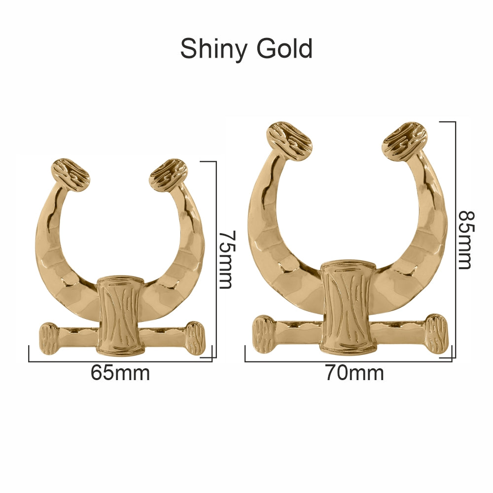 - Quality smooth vintage style gliding wavy curved frame shiny gold finish multipurpose webbing U shaped buckle with a slider on both ends is an excellent choice for those who love the uniqueness in their outfit. The curved bar on both ends are wide so you can insert any type of cloth material belt/elastic to create the belt or stitch it on the garments as an embellishment. Available in 2 different sizes- 75mm and 85mm.